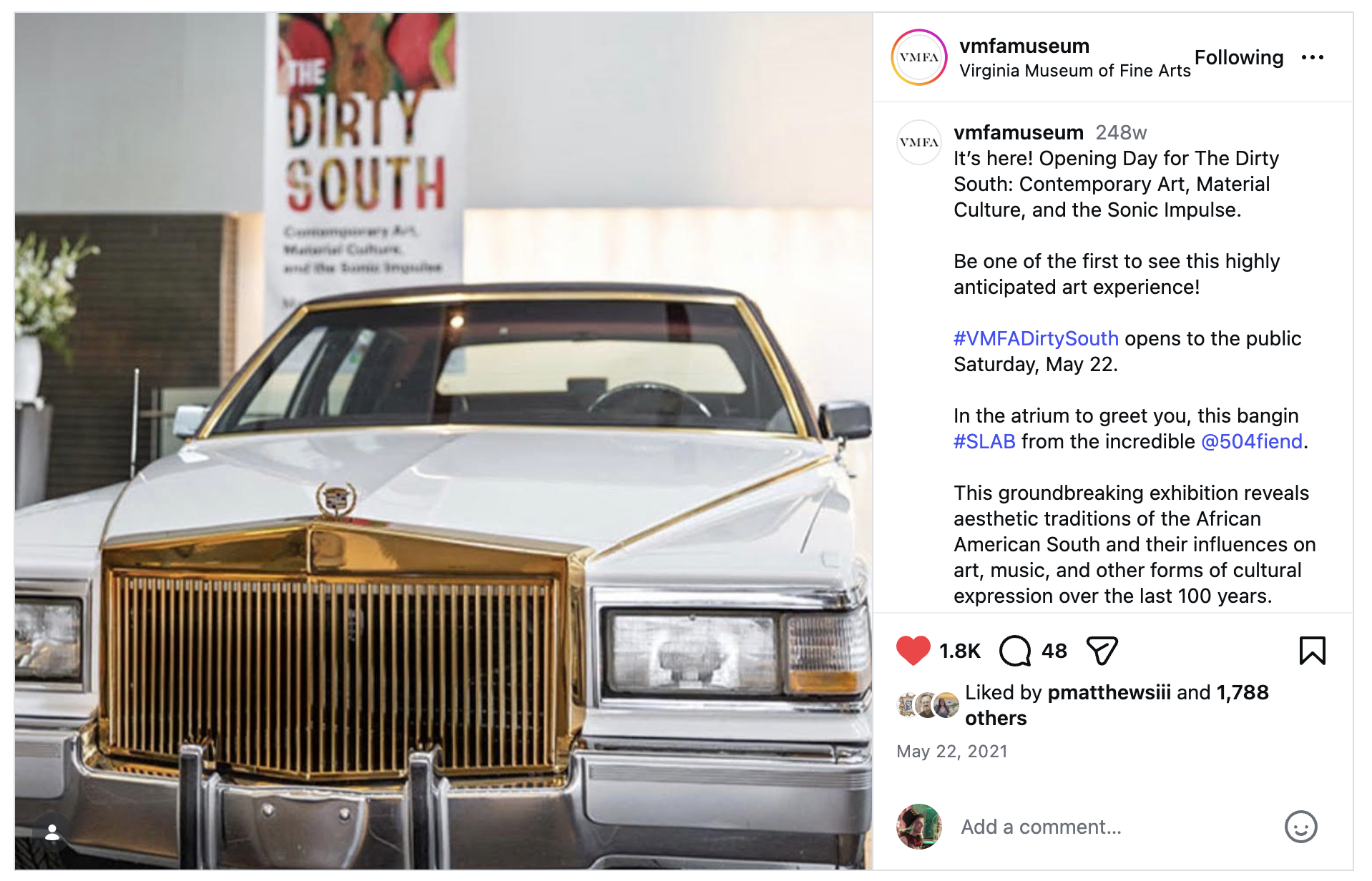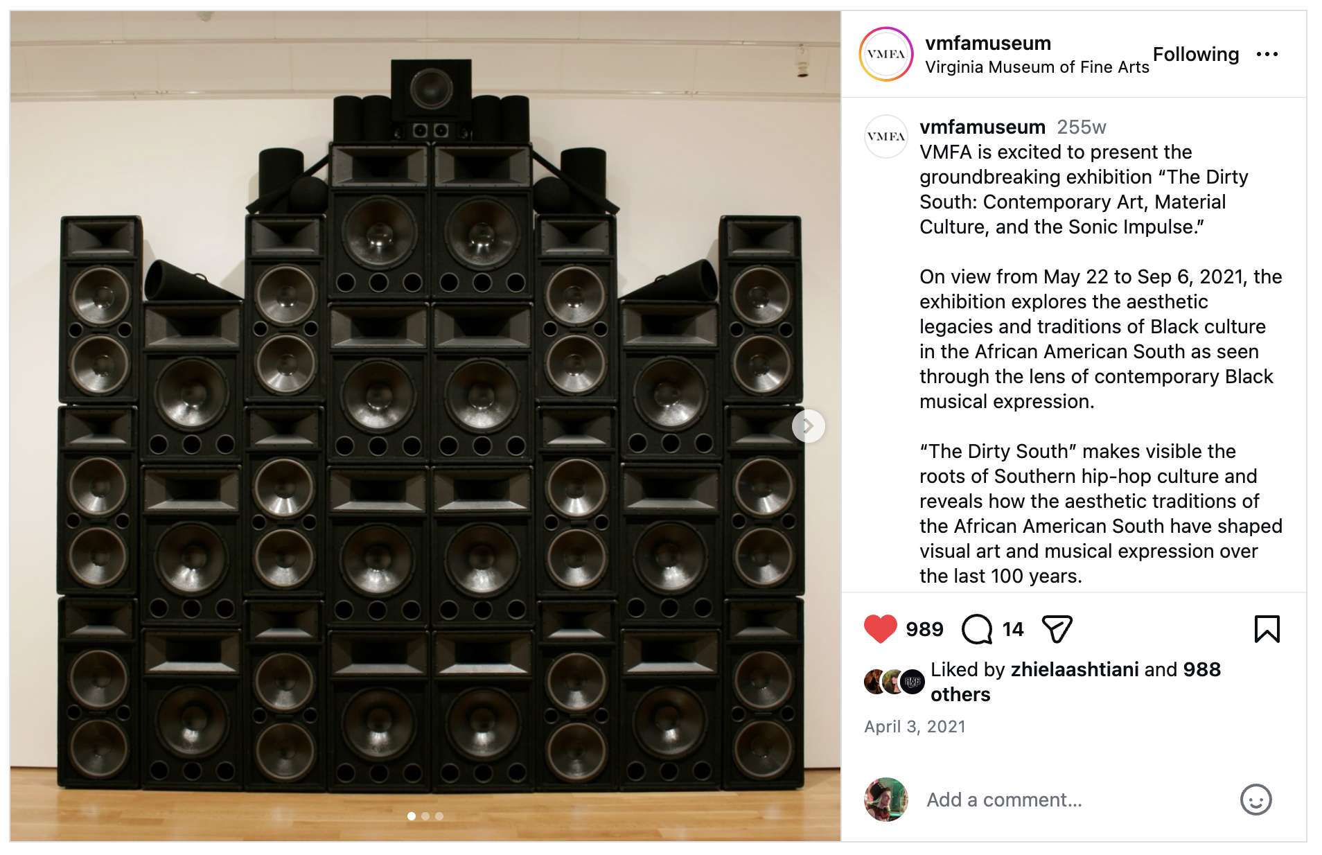 Social media promotion for museum art exhibition, The Dirty South: Contemporary Art, Material Culture, and the Sonic Impulse