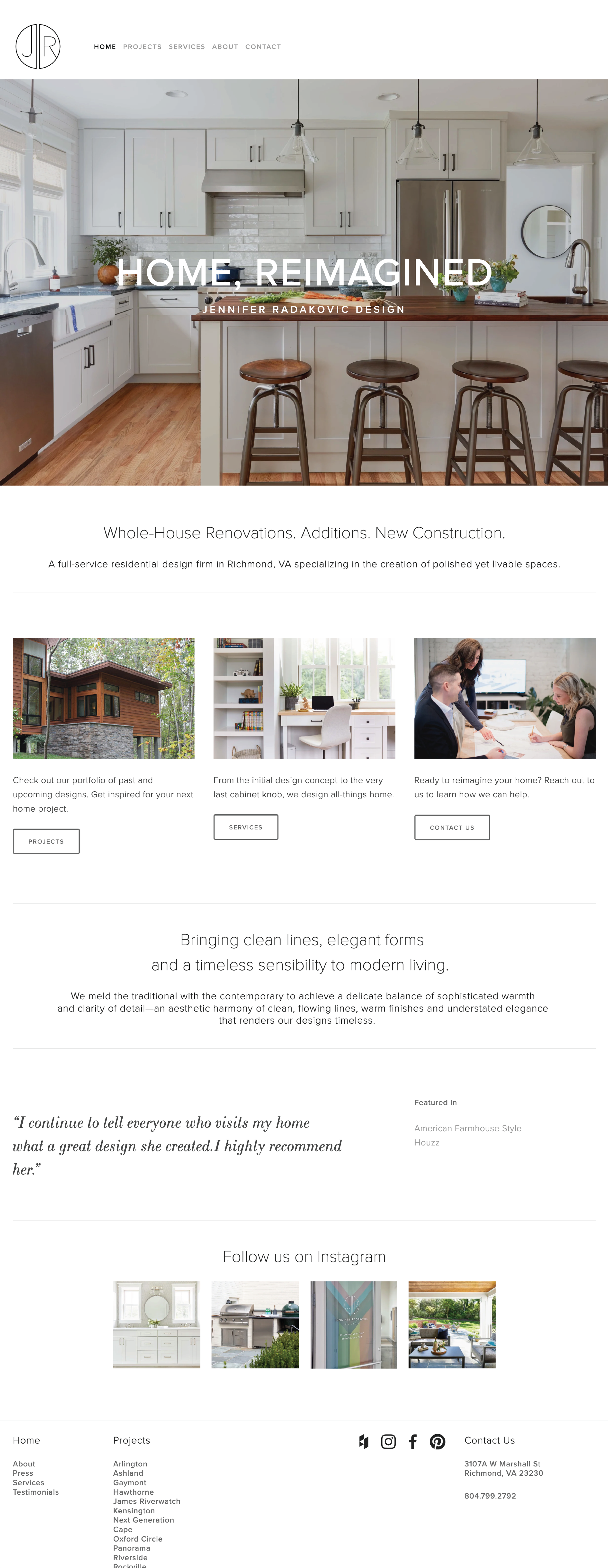 Website design in Squarespace for architecture & interior design firm, including content development