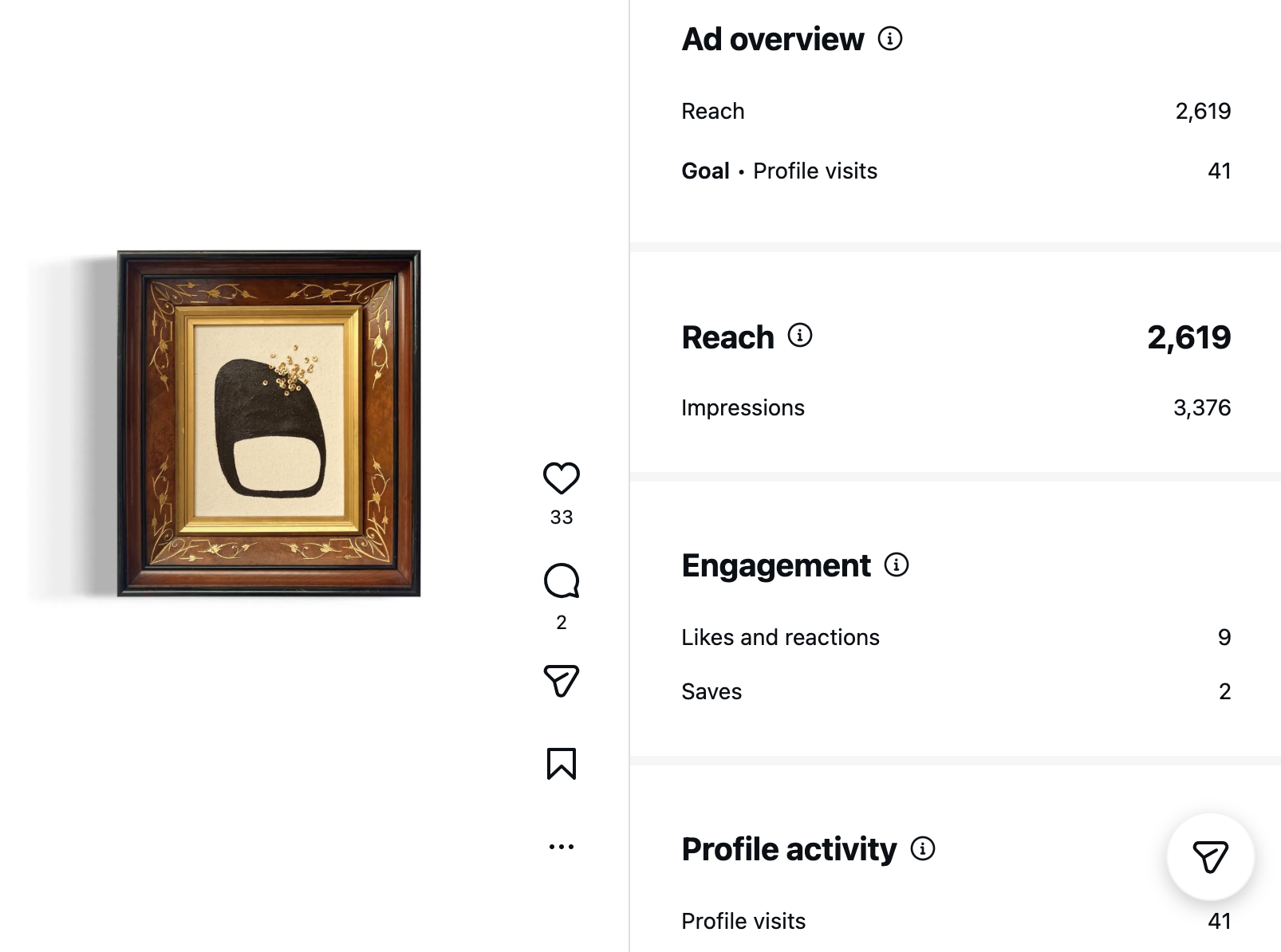 By targeting luxury art lovers in my area, this small but mighty ad resulted in two pieces of original artwork sold.
